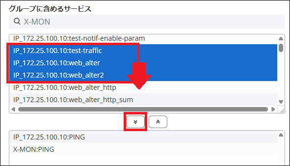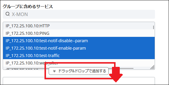 X-MON4.2.1にて、ホスト・サービス・ユーザのグループに複数件の要素をまとめて追加しようとしています。